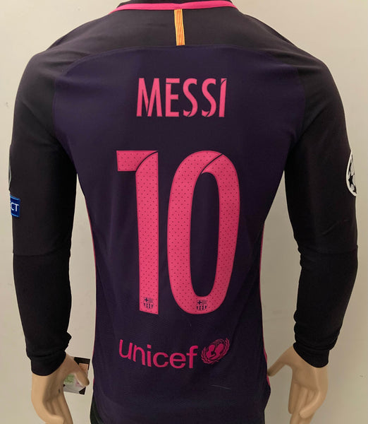2016-2017 FC Barcelona Away Shirt Lionel Messi Player Issue Kitroom Long Sleeve Champions Mint Size M (Fitted)