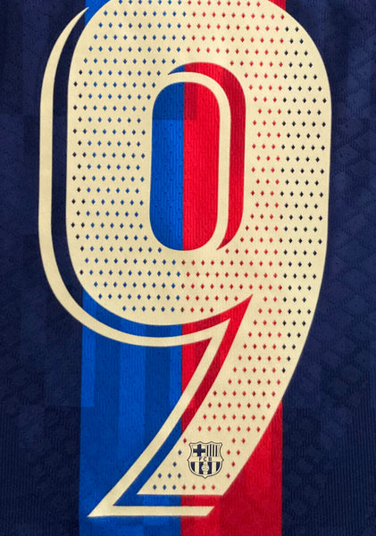 (Jersey de local del Barça, temporada 22-23 versión jugador, es la comercial. Nueva con etiquetas, incluye dorsal de Lewandowski, esa tenporada acabaría siendo Pichichi)