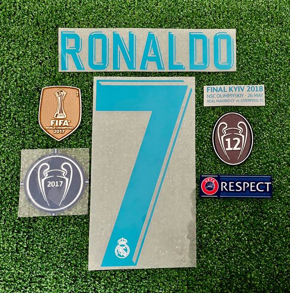 2017-2018 Real Madrid CF Home Name Set Patches Player Issue Kitroom Cristiano Ronaldo Final Champions League