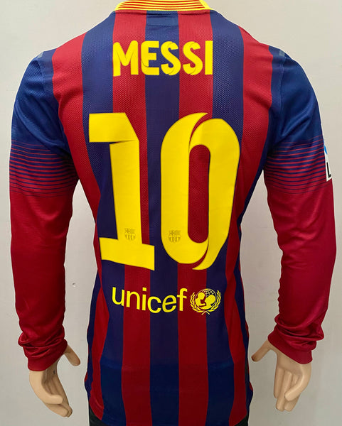2013-2014 FC Barcelona Home Shirt Lionel Messi Player Issue Kitroom Long Sleeve with defect Mint Size L (Fitted)