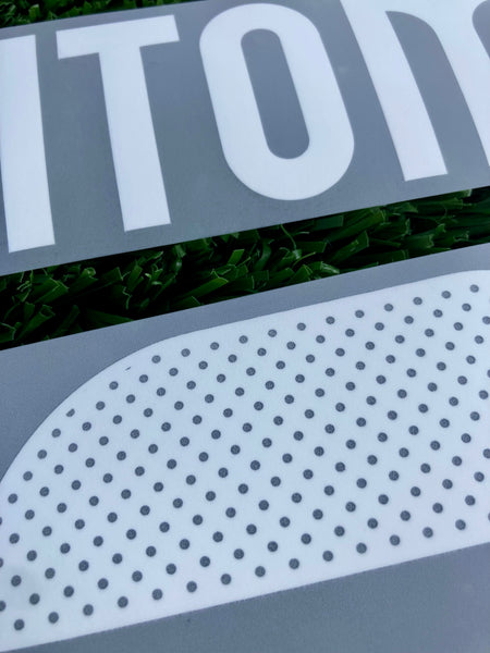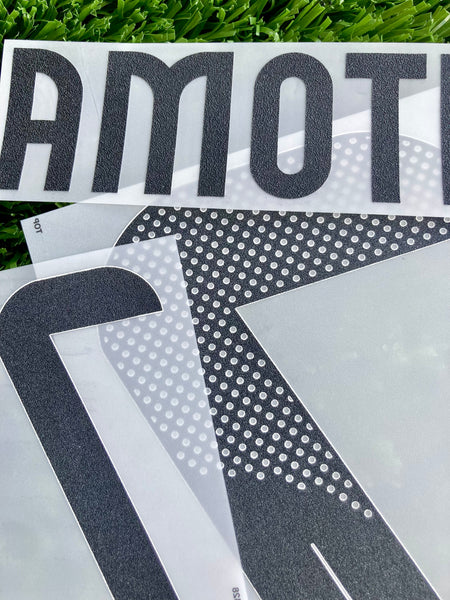 Número y nombre de Kaoru Mitoma para el jersey de local de la Selección de Japón (blue Samurai) de la temporada 2024-2025. Versión jugador, esta tipografía es la oficial por parte de la federación como se puede ver en la parte superior con las siglas JFA (Japanese Football Association) y la marca es Dekographics.