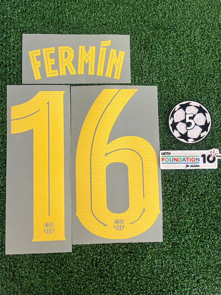 2025-2026 FC Barcelona Home and Fourth Name Set Patches and Number Fermin Lopez Player Issue Cup and Champions League Stahls TextPrint