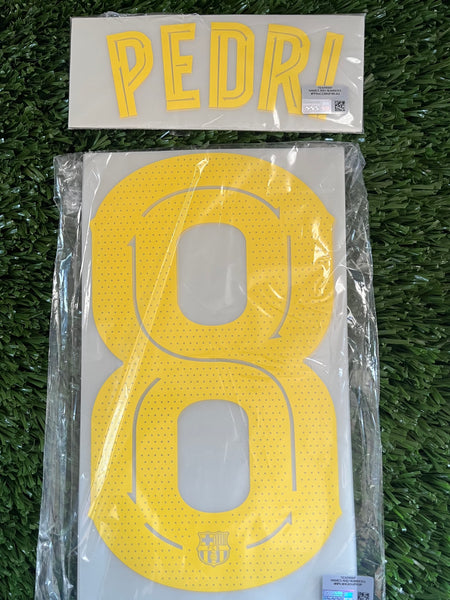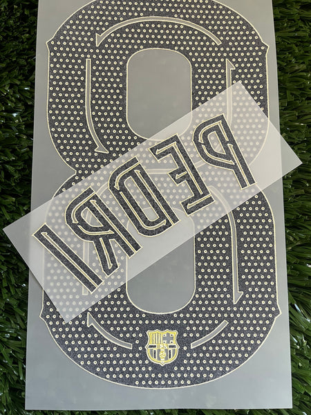 Número y nombre de Pedri, es la edición de Copa o de Champions League. El precio incluye un número y un nombre. Hecho de tintas pre secadas. Se envía sin bolsa.